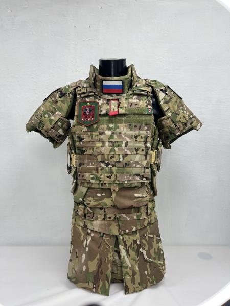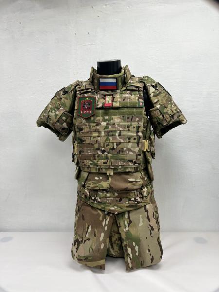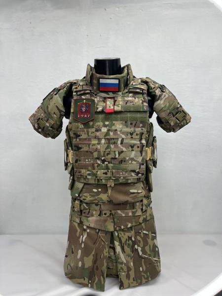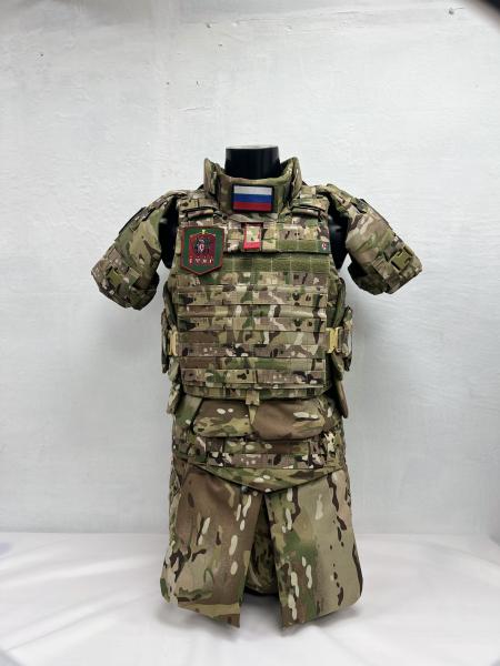 Комплект состоит из бронежилета, бронеюбки, дополнительных элементов защиты конечностей и органов, модулей для бронеплит Баллистика в стоимость не входит и приобретается отдельно.
